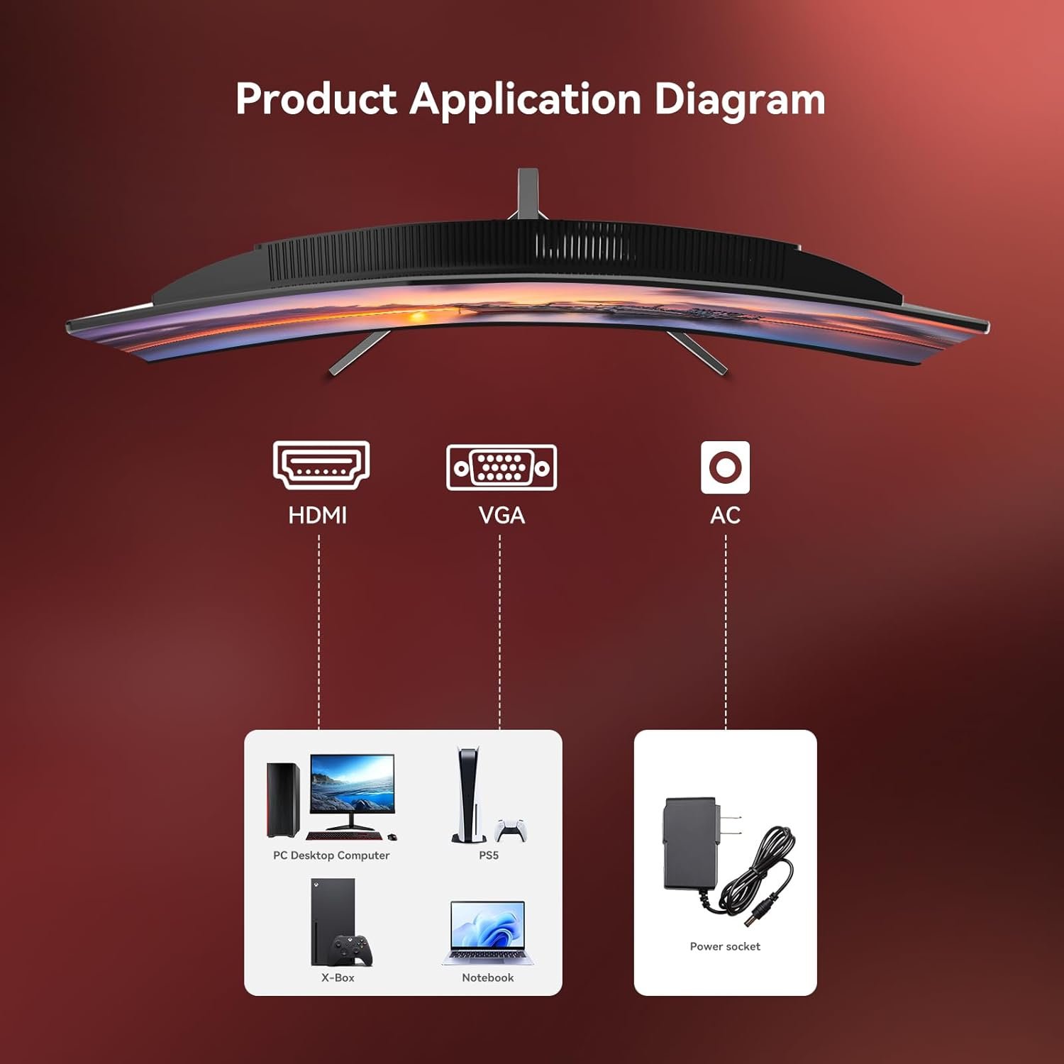 Narrow Bezel:24inch 3000R curved monitor’s body thickness is no more than 1 cm, with a borderless design on three sides providing an immersive viewing experience, and almost seamless when used in a dual-monitor setup. It supports -5° to 15° front and rear angle adjustments, allowing for a comfortable viewing angle according to individual needs.HDMI×1,VGA×1, make it easy to connect to computers or gaming consoles.
