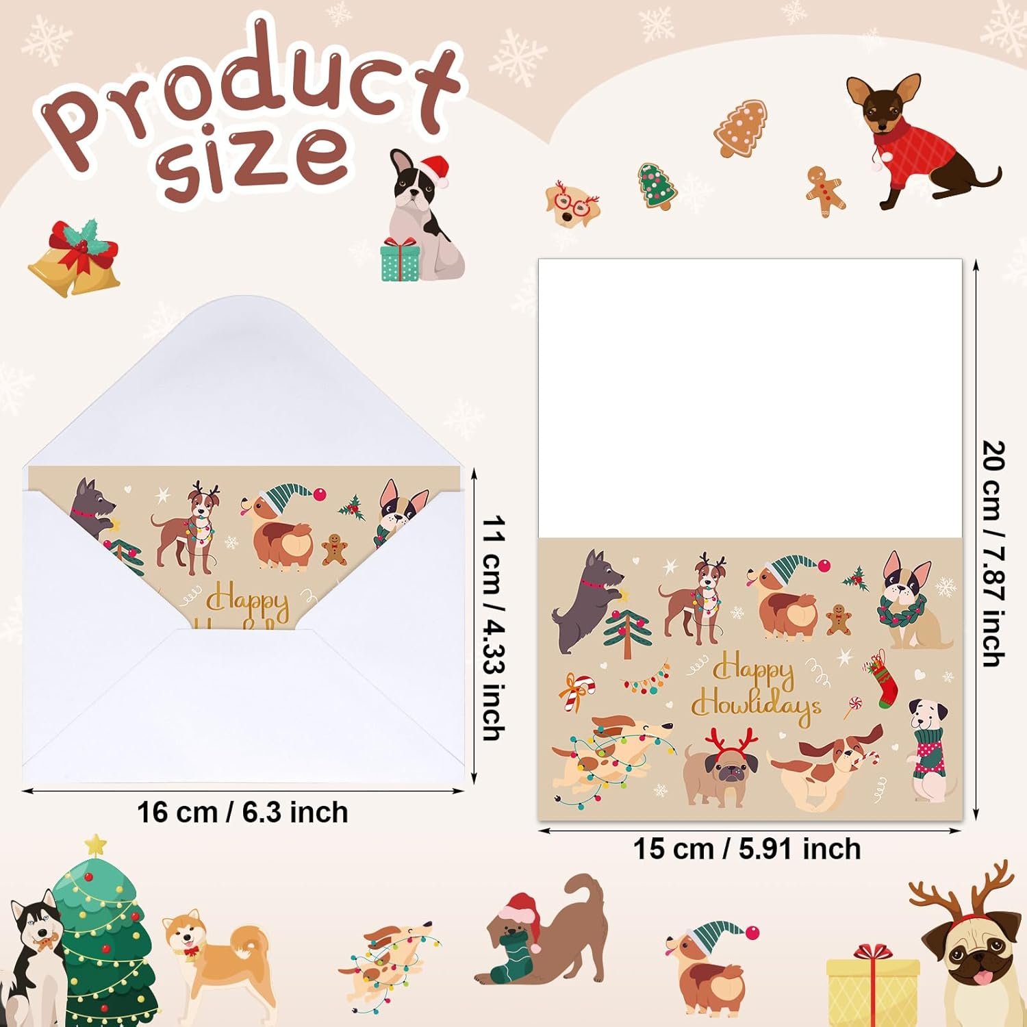Perfectly Sized for Mailing and Gifting: unfolded, the funny dogs Christmas note cards measure 6 x 8 inches (folded to 4 x 6 inches), with 6.3 x 4.3 inch envelopes included for snug, secure mailing; The compact yet spacious design makes them easy to handle while offering ample room for your holiday wishes
