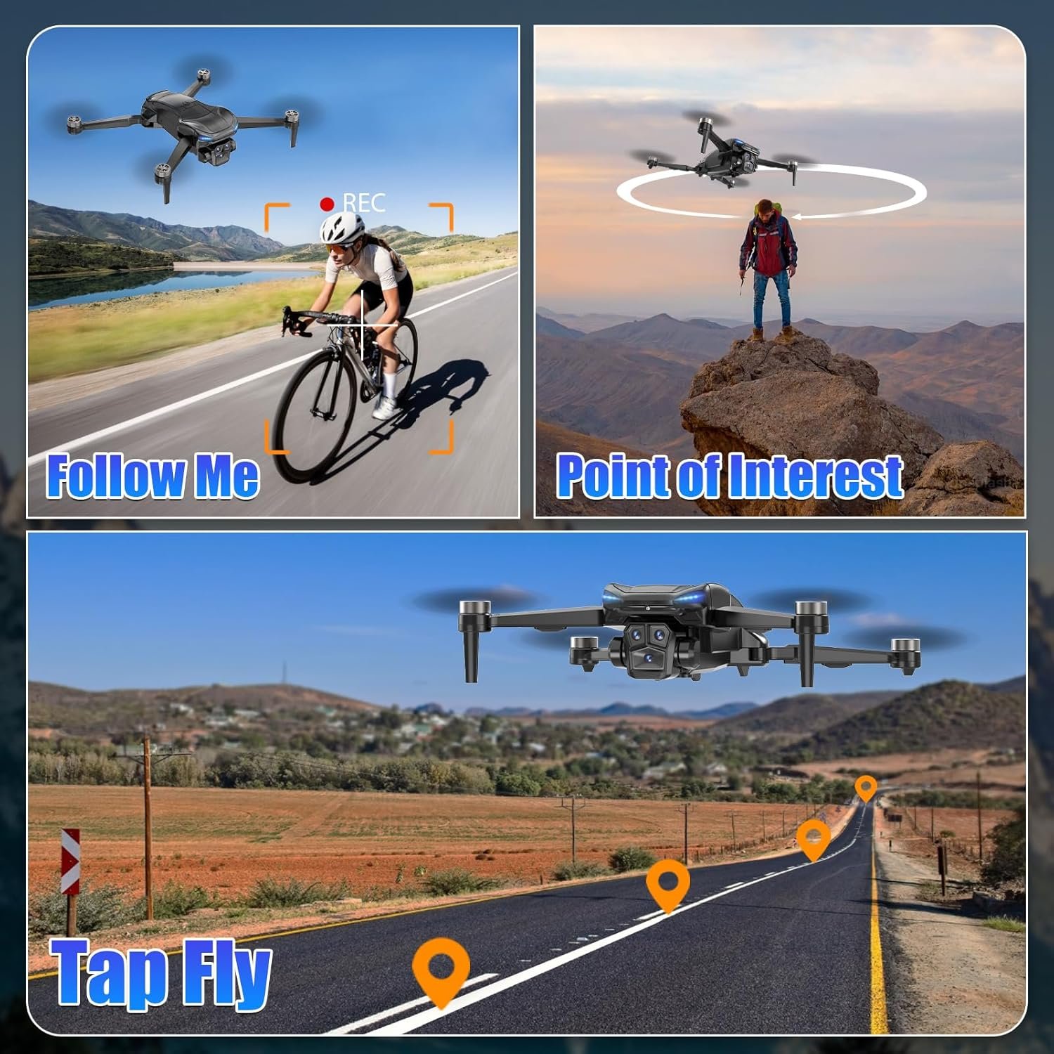 Long Flight Time & Brushless Motor: Equipped with two batteries, this 4k camera drone delivers up to 60 minutes of total flight time (approximately 30 minutes per battery). The powerful brushless motors provide smoother, faster, and quieter flights, while also ensuring a longer lifespan—giving you a reliable and worry-free flying experience.