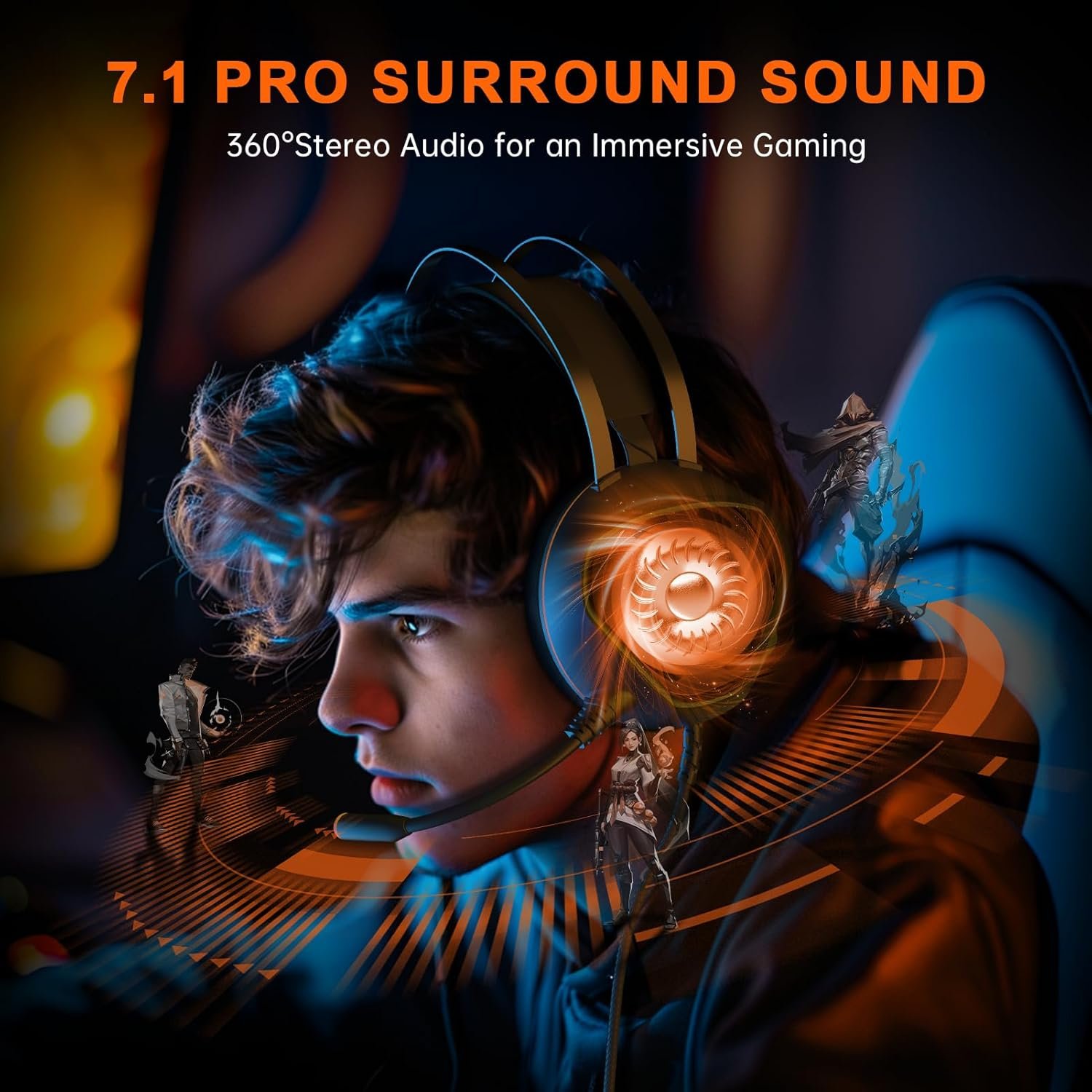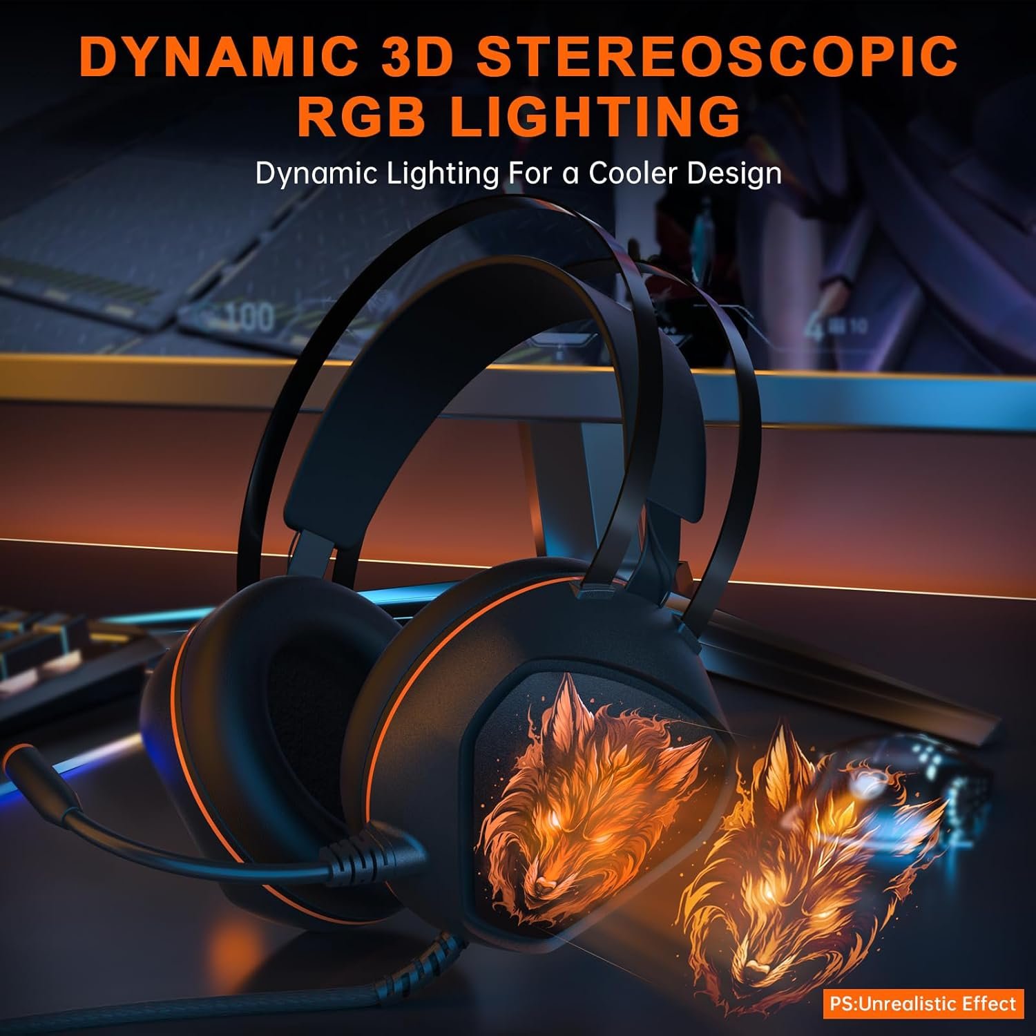 【𝑭𝒂𝒏𝒕𝒂𝒔𝒕𝒊𝒄 𝑫𝒚𝒏𝒂𝒎𝒊𝒄 𝑺𝒕𝒆𝒓𝒆𝒐𝒔𝒄𝒐𝒑𝒊𝒄 𝑹𝑮𝑩 𝑳𝒊𝒈𝒉𝒕𝒊𝒏𝒈】: CM7000 gaming headsets with mic feature an innovative dynamic RGB lighting configuration, enhancing their aesthetic appeal. The dynamic rotation of RGB lights accentuates the distinctive style and characteristics of this Xbox headset, elevating their visual impact. This sophisticated lighting design imbues the wolf motifs on this headset’s sides with a heightened realism, thereby enriching your gaming immersion with a truly distinctive experience.